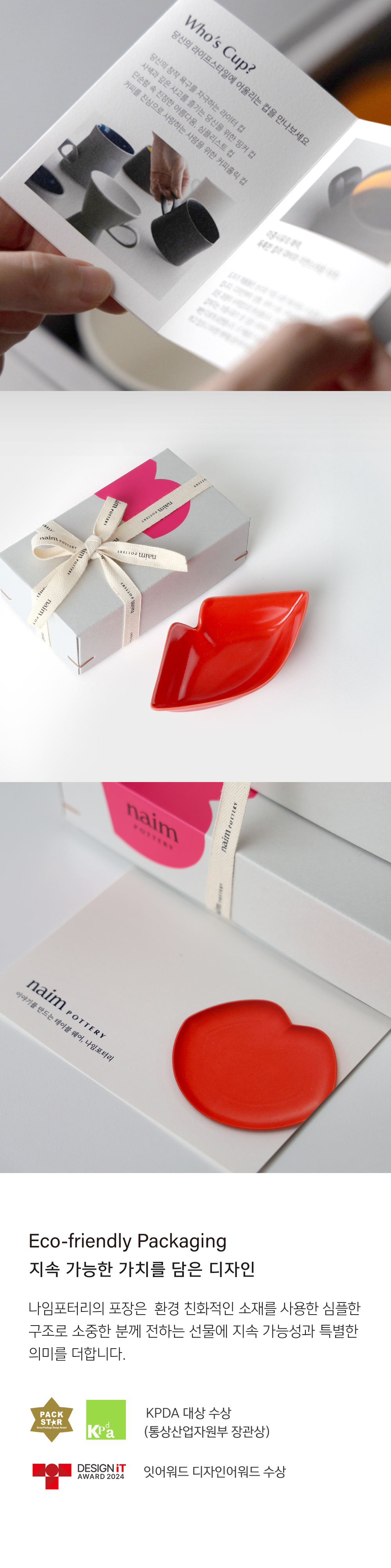 | 감각적인 오브제 입술 모티프를 담은 미니 플레이트로, 티백·소스·디핑류부터 반지와 이어링 같은 악세사리까지 세련되게 올려두기 좋습니다. 작지만 테이블과 공간에 확실한 포인트를 더합니다. |