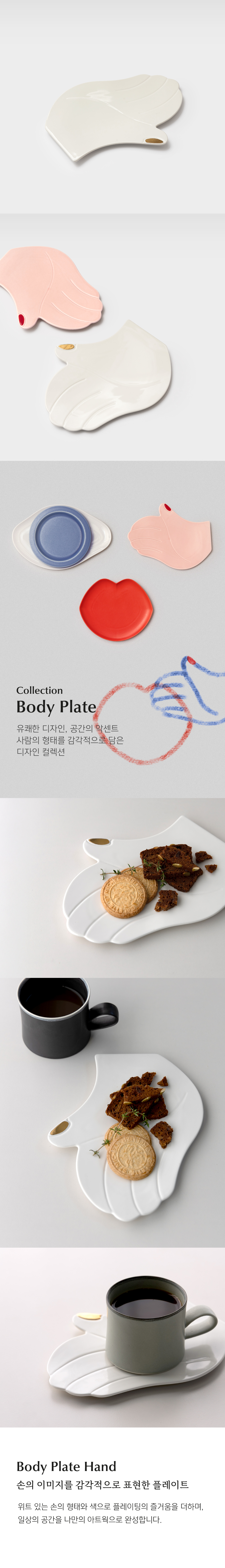 테이블 위에 놓인 손 손 모양 접시에 올려지면 유쾌한 장면이 됩니다. 그래픽처럼 간결한 형태와 포인트 컬러가 공간에 생기를 더하고 특별한 분위기를 만들어줍니다. |
