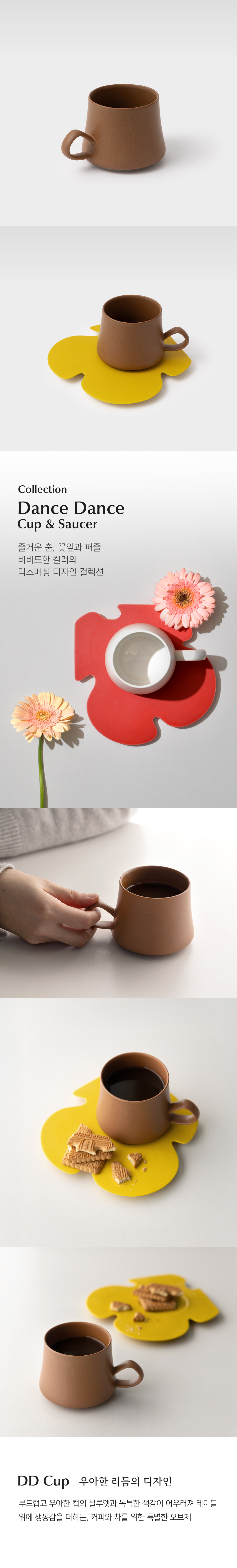 리듬을 담은 부드러운 곡선 댄스댄스 컬러 컵은 꽃잎을 닮은 곡선과 단정한 실루엣이 어우러져 고요한 아름다움을 완성합니다. 유약의 색감은 우아하고 차분한 분위기를 자아냅니다. 다채로운 색의 컵과 소서를 취향대로 조합해, 일상의 여유를 한층 더 깊이 있게 즐길 수 있습니다. |